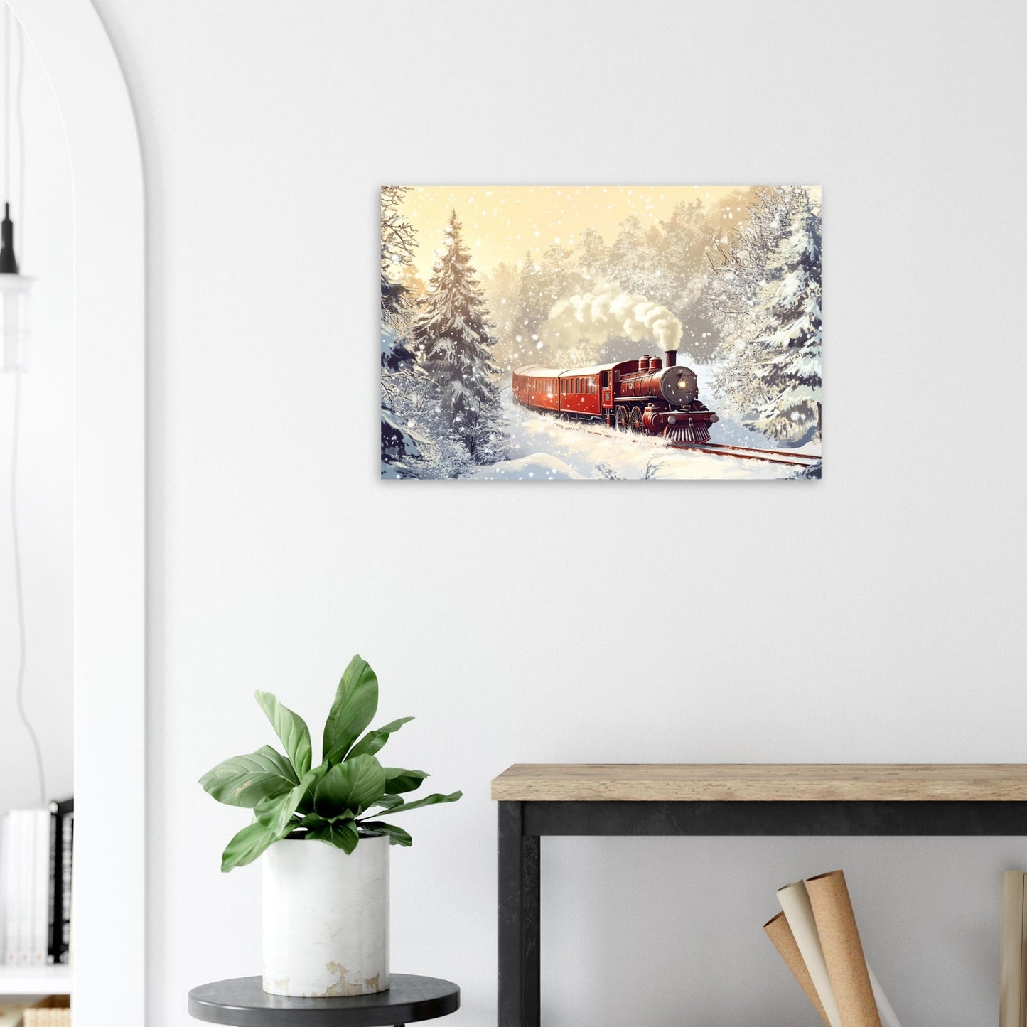 👉 Bestellen Sie Ihren „Roten Dampfzug (KI-Bild)“ : matter Alu-Dibond- Druck, Galeriequalität, Formate bis 70×100 cm .
