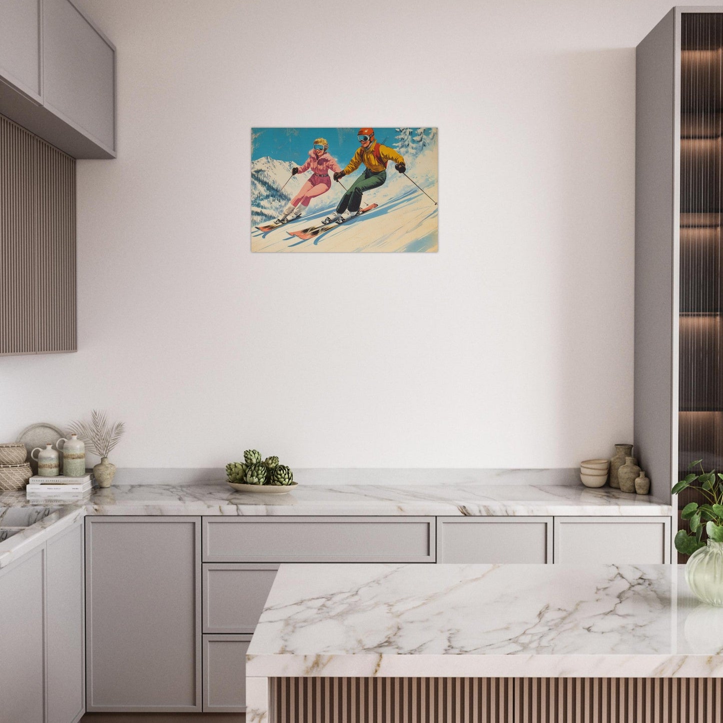 Aluminium-Dibond bietet perfekte Planlage, eine matte Oberfläche ohne Blendeffekte und lange Haltbarkeit ohne Verglasung – ideal zur Hervorhebung von Bergdetails. Das Gemälde ist fertig zum Aufhängen.