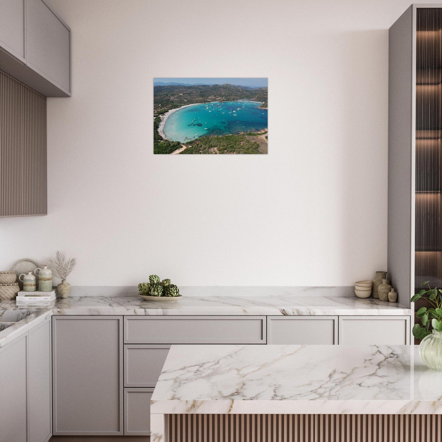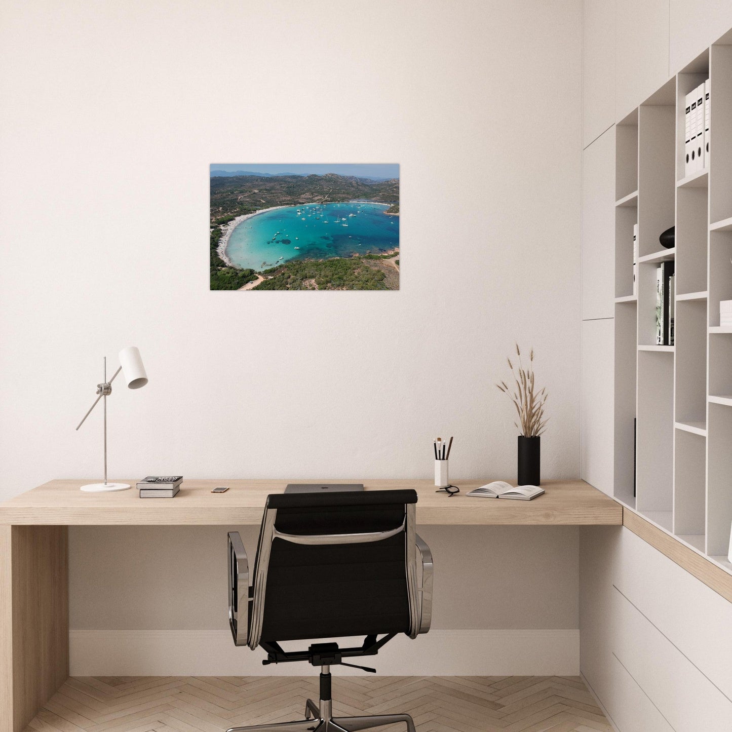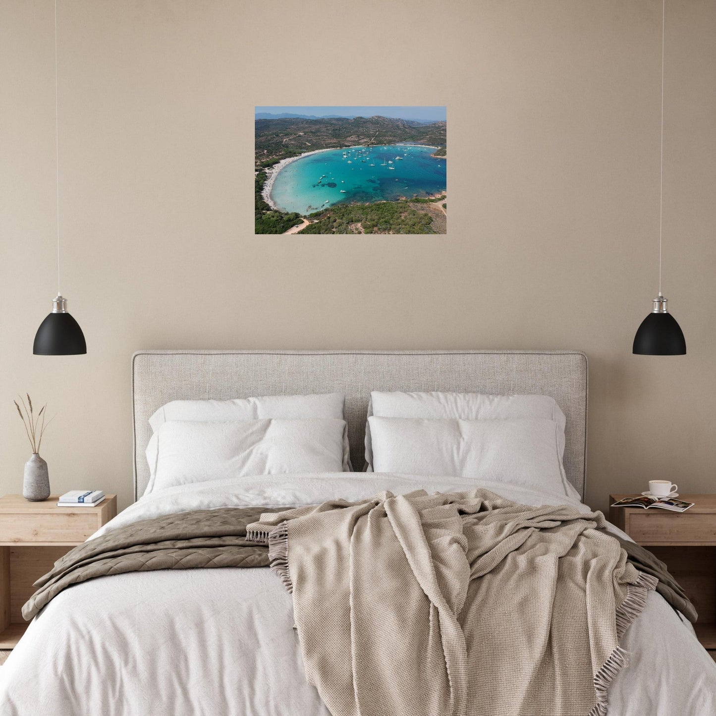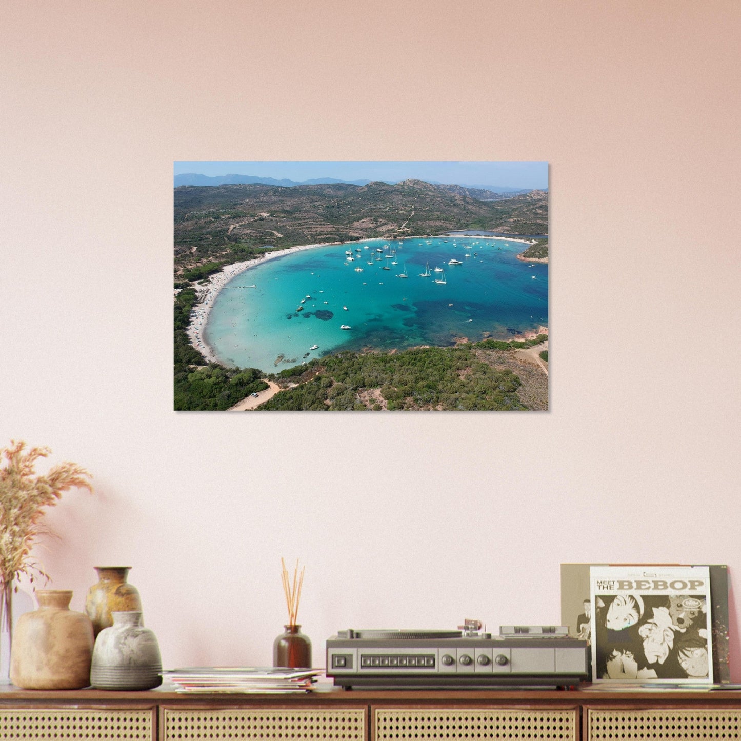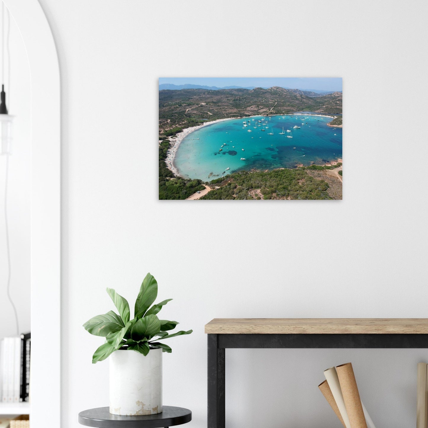 Dieses Foto des Strandes in der Bucht von Santa Manza auf Korsika ist eine perfekte Erinnerung an einen Urlaub auf dieser Mittelmeerinsel. Mit atemberaubenden Ausblicken auf kristallklares Wasser und weißen Sand ist dieses Foto eine schöne Ergänzung für jede Inneneinrichtung. Genießen Sie die Ruhe und Schönheit Korsikas mit diesem gerahmten Foto.