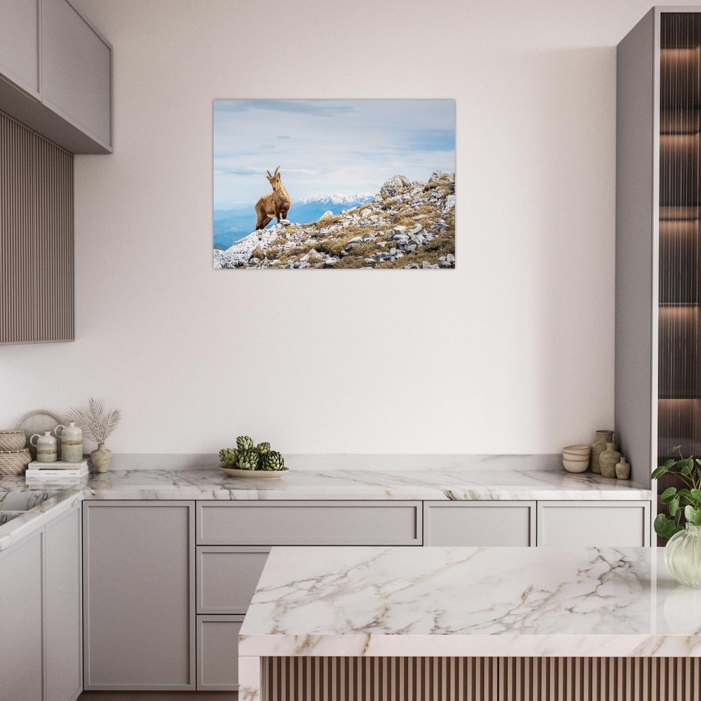 - Schicker Bergstil : Minerallinien, die zu hellem Holz, Weiß und Mattschwarz passen.
