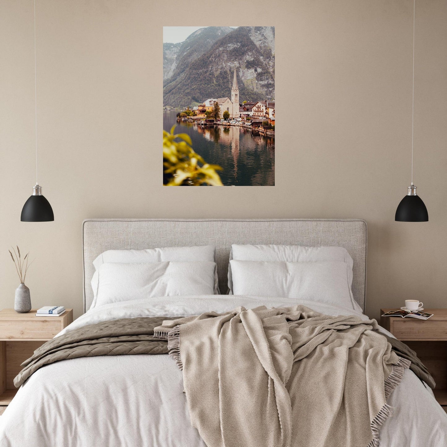 Hallstatt is one of the most photographed villages in the world, famous for its Baroque architecture, majestic mountains, and peaceful atmosphere. This image brings a touch of Alpine charm and serenity to your interior, perfect for creating a cozy and elegant ambiance.
