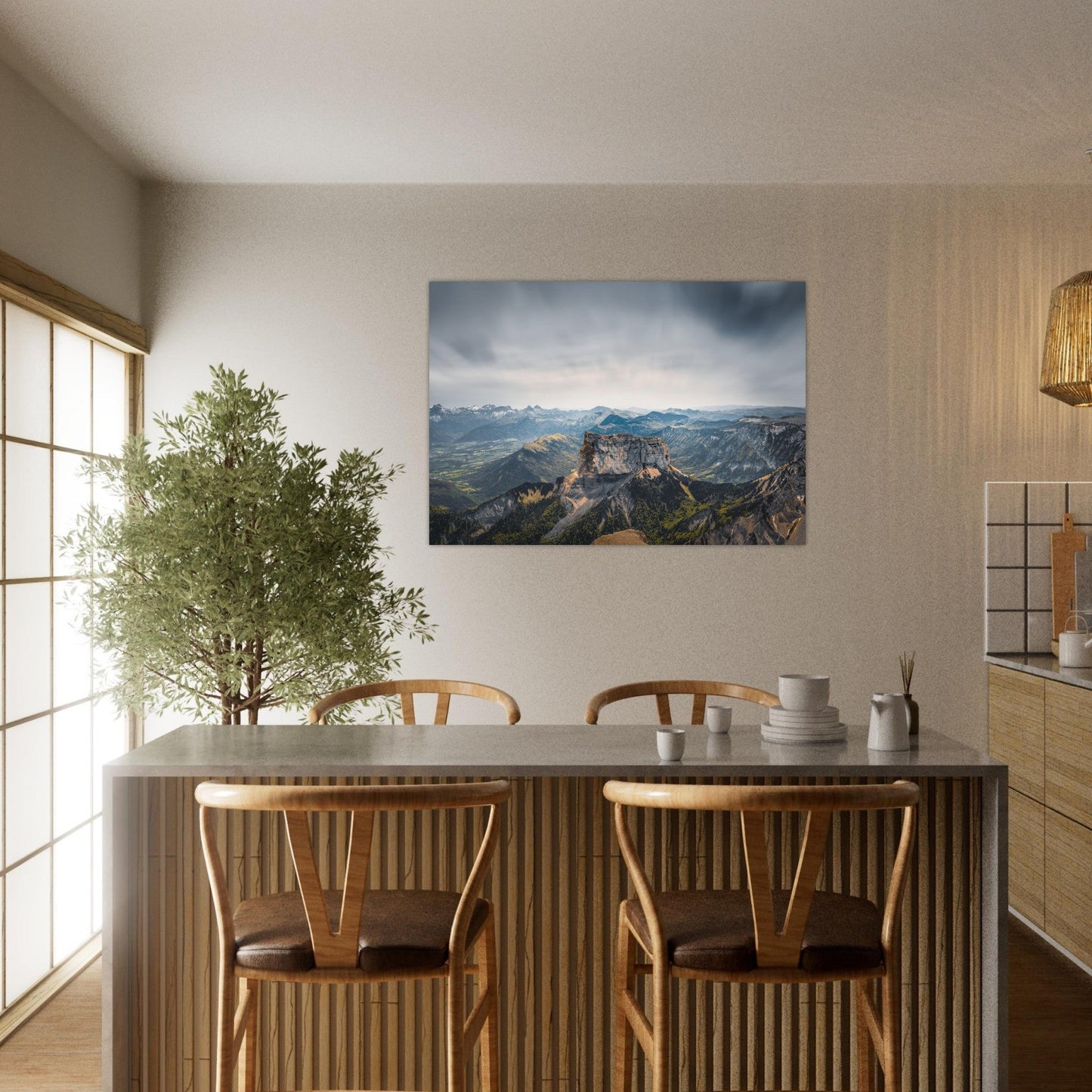 - Mineral lines : chic mountain style with light wood, white, matte black.