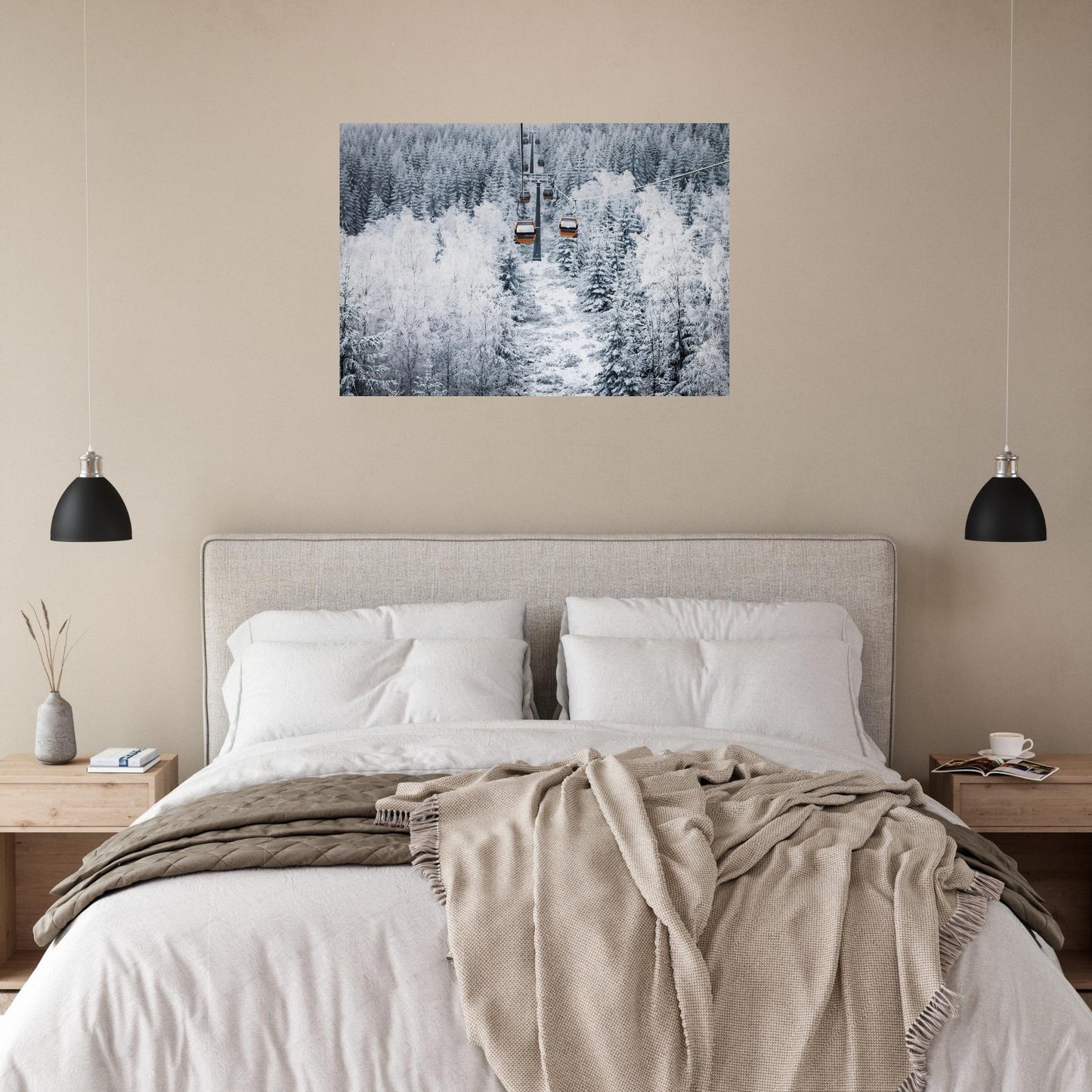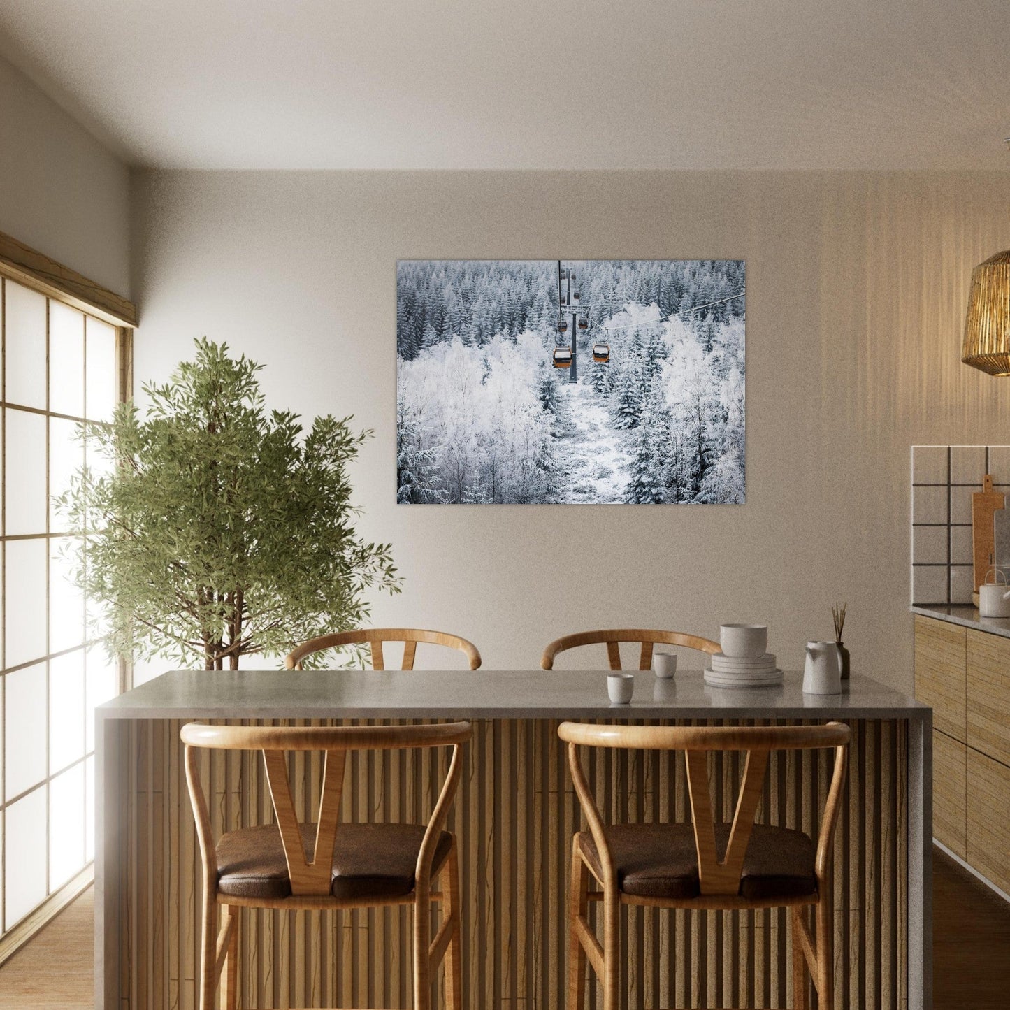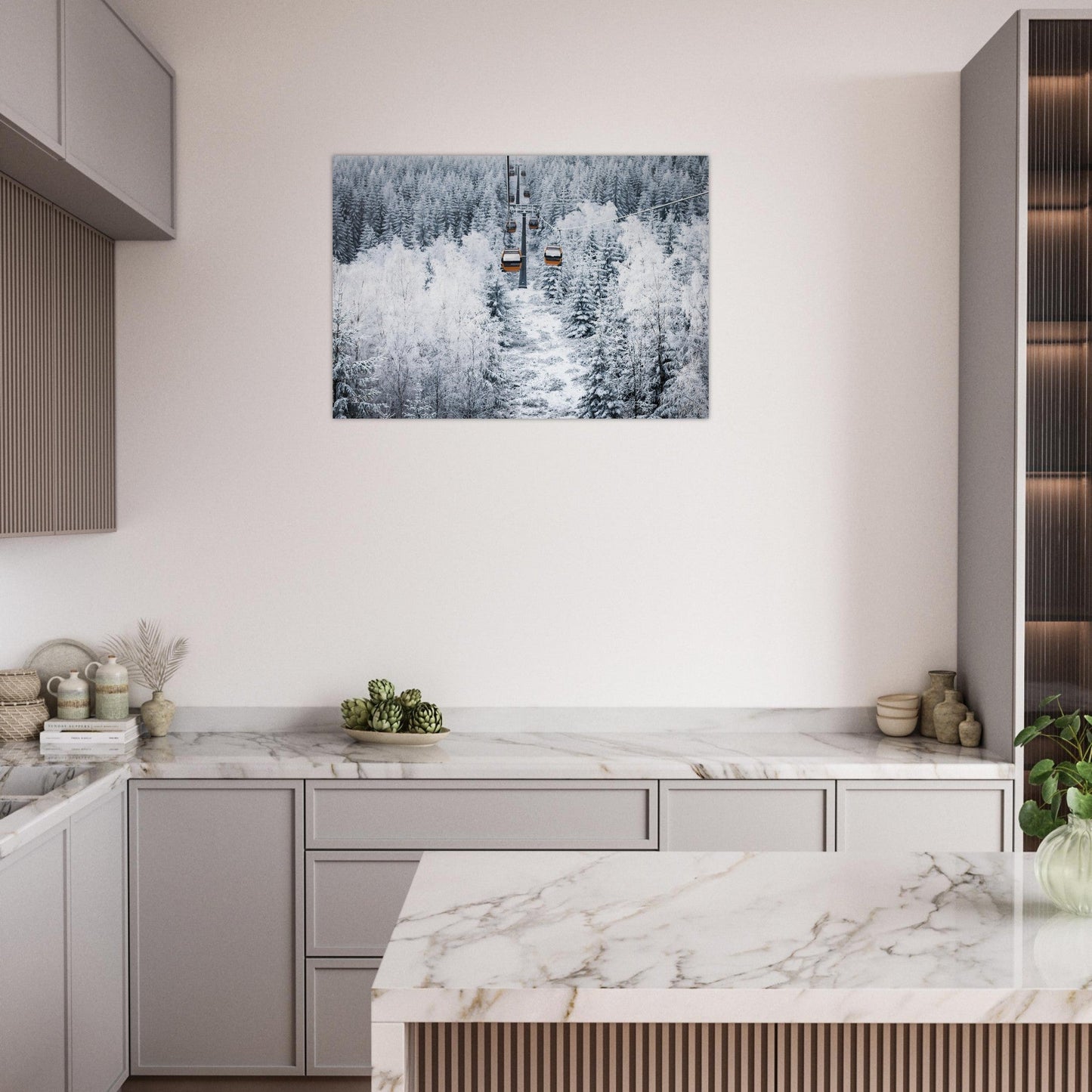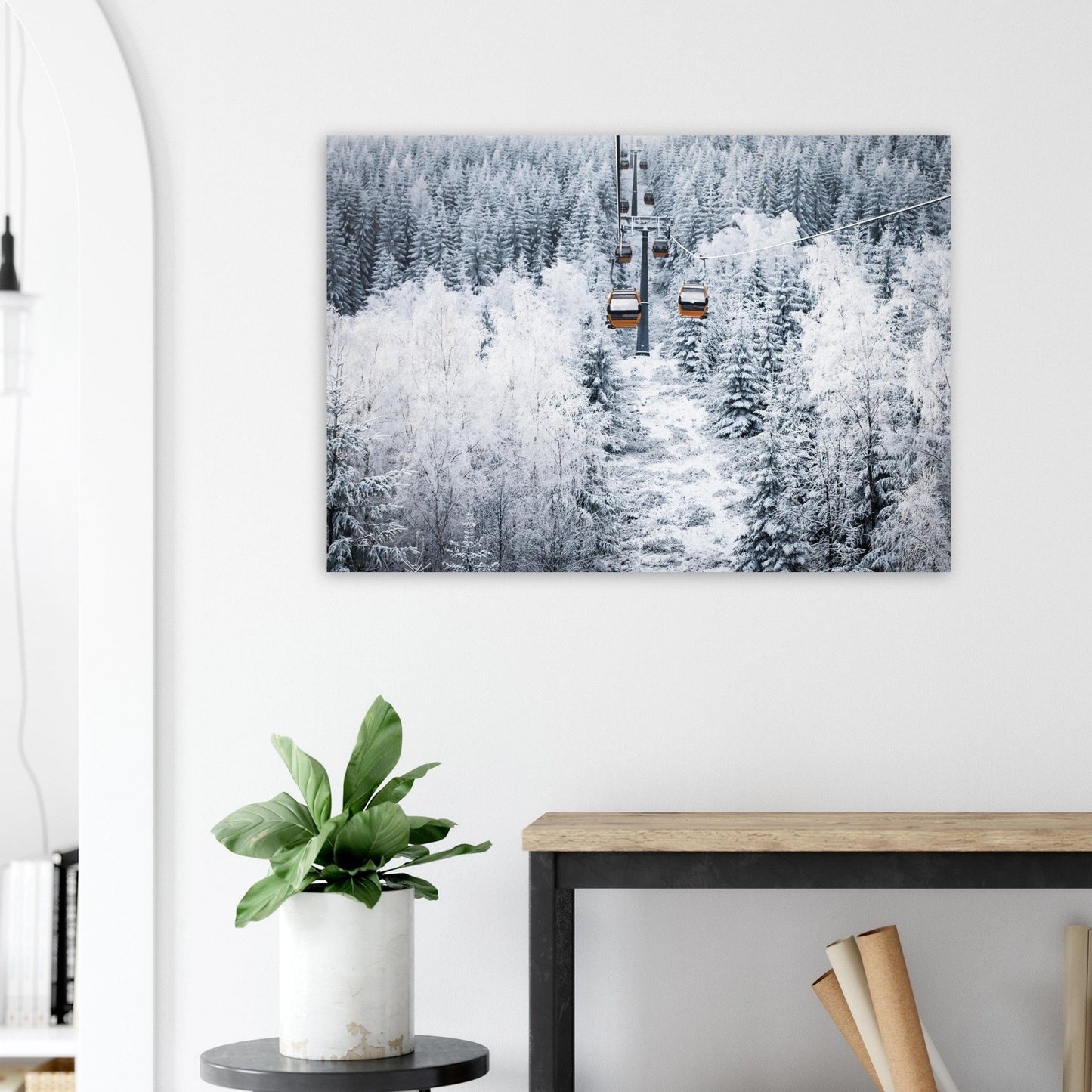 👉 Order your painting “Gondolas & snow-covered fir trees (Alps)” : matt Alu Dibond print, gallery quality, formats up to 70×100 cm .