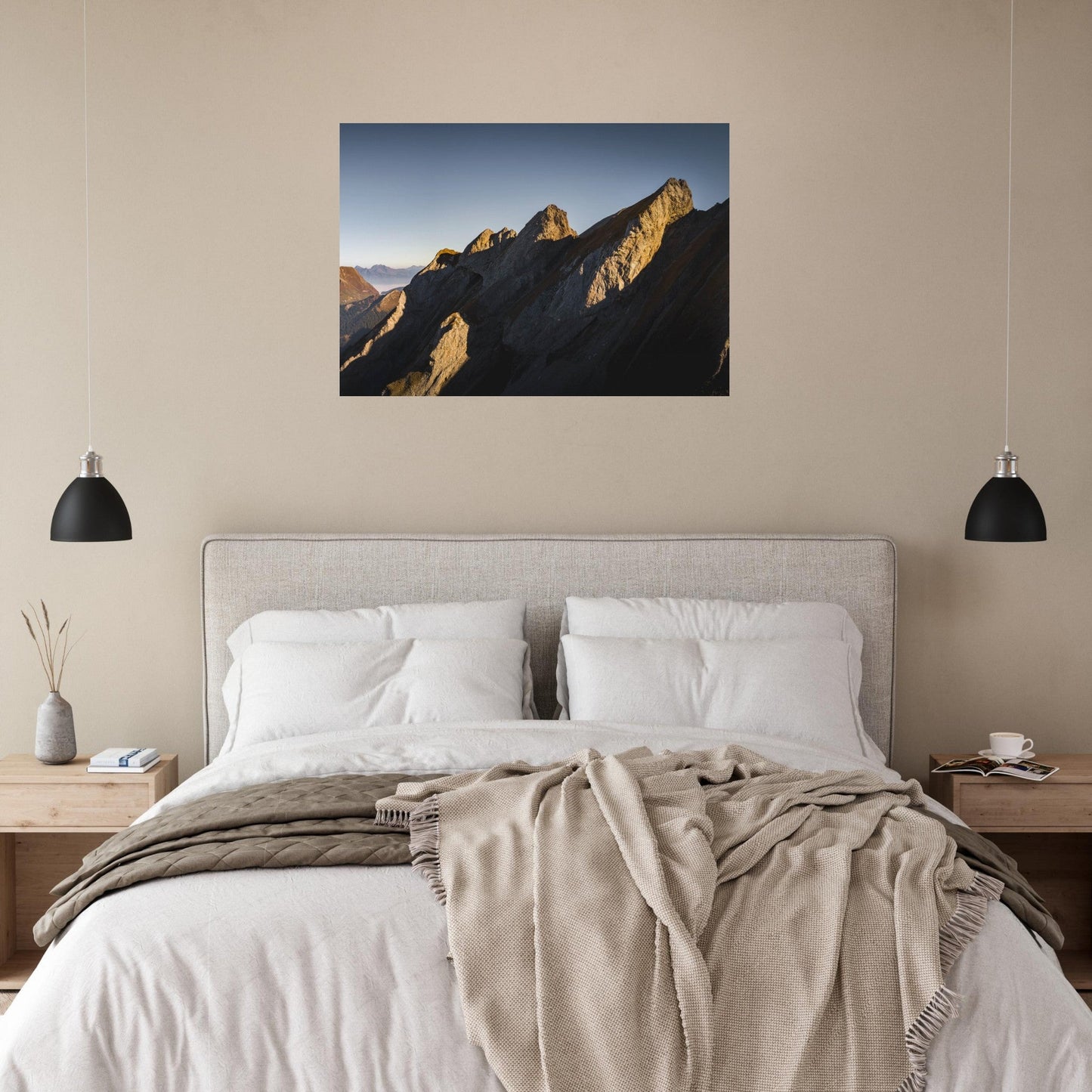 Je photographie les Alpes (Mont-Blanc, Vanoise, Beaufortain, Vercors, etc.) et j’édite des tirages premium sur Alu Dibond 3 mm, rendu mat. Chaque pièce capture la lumière des sommets, les textures minérales et la pureté de la neige pour une décoration murale élégante et durable, prête à accrocher chez vous.