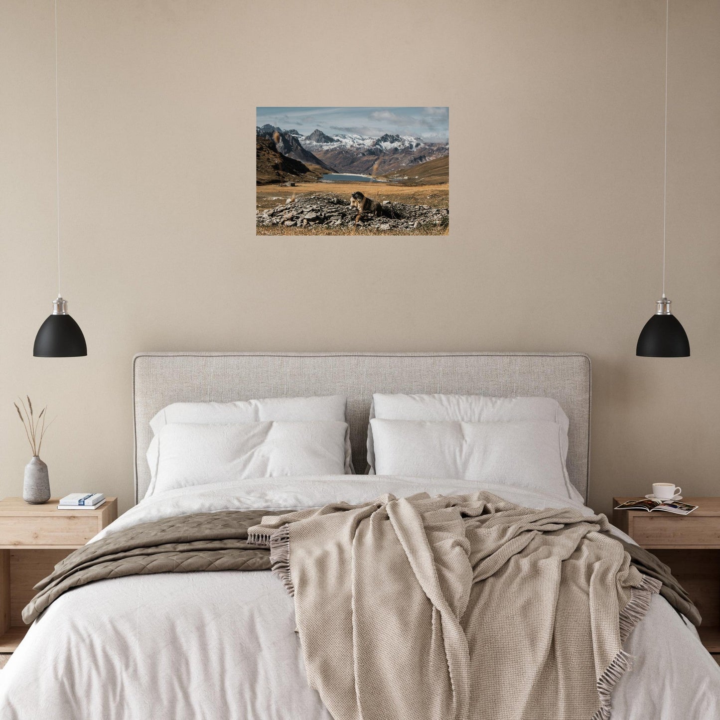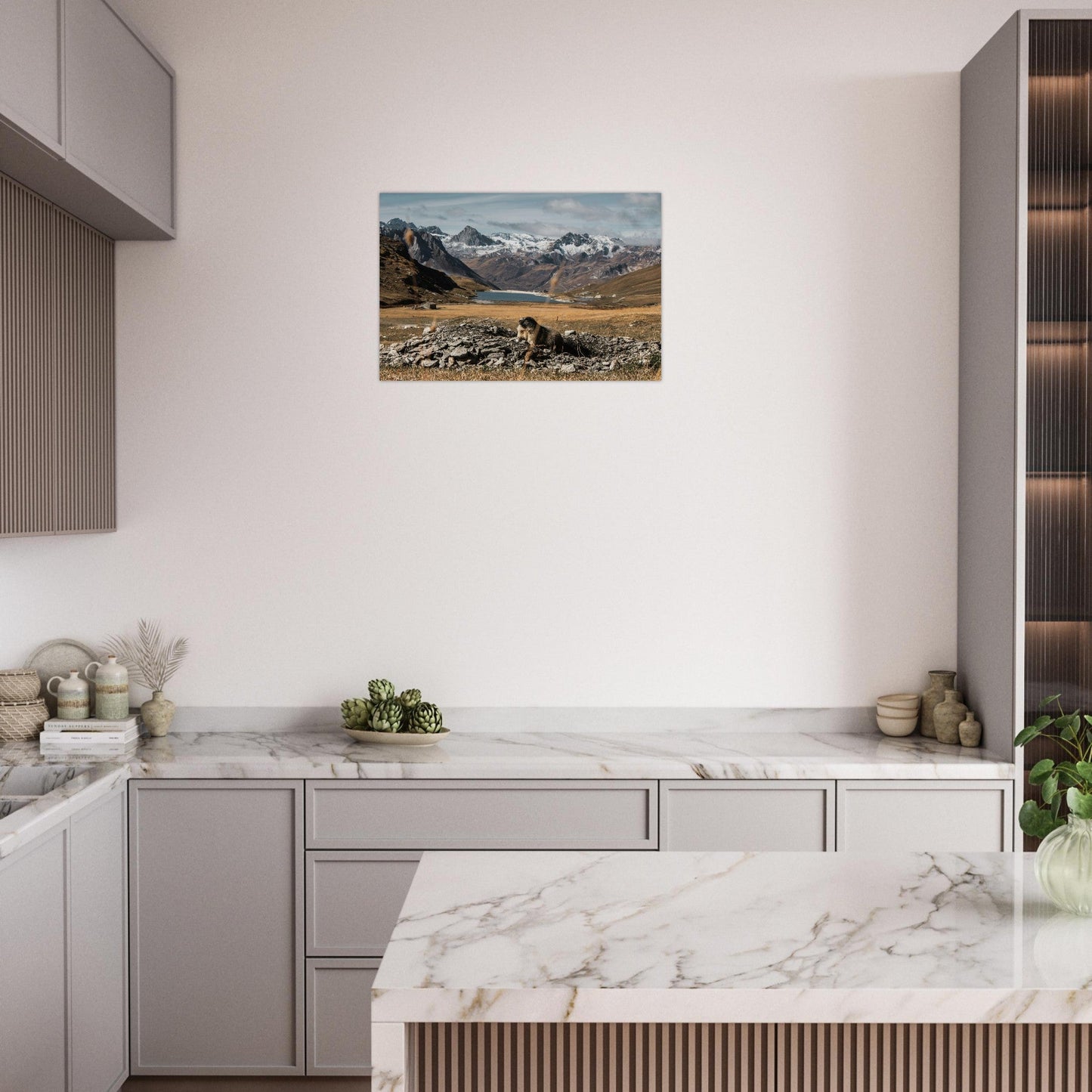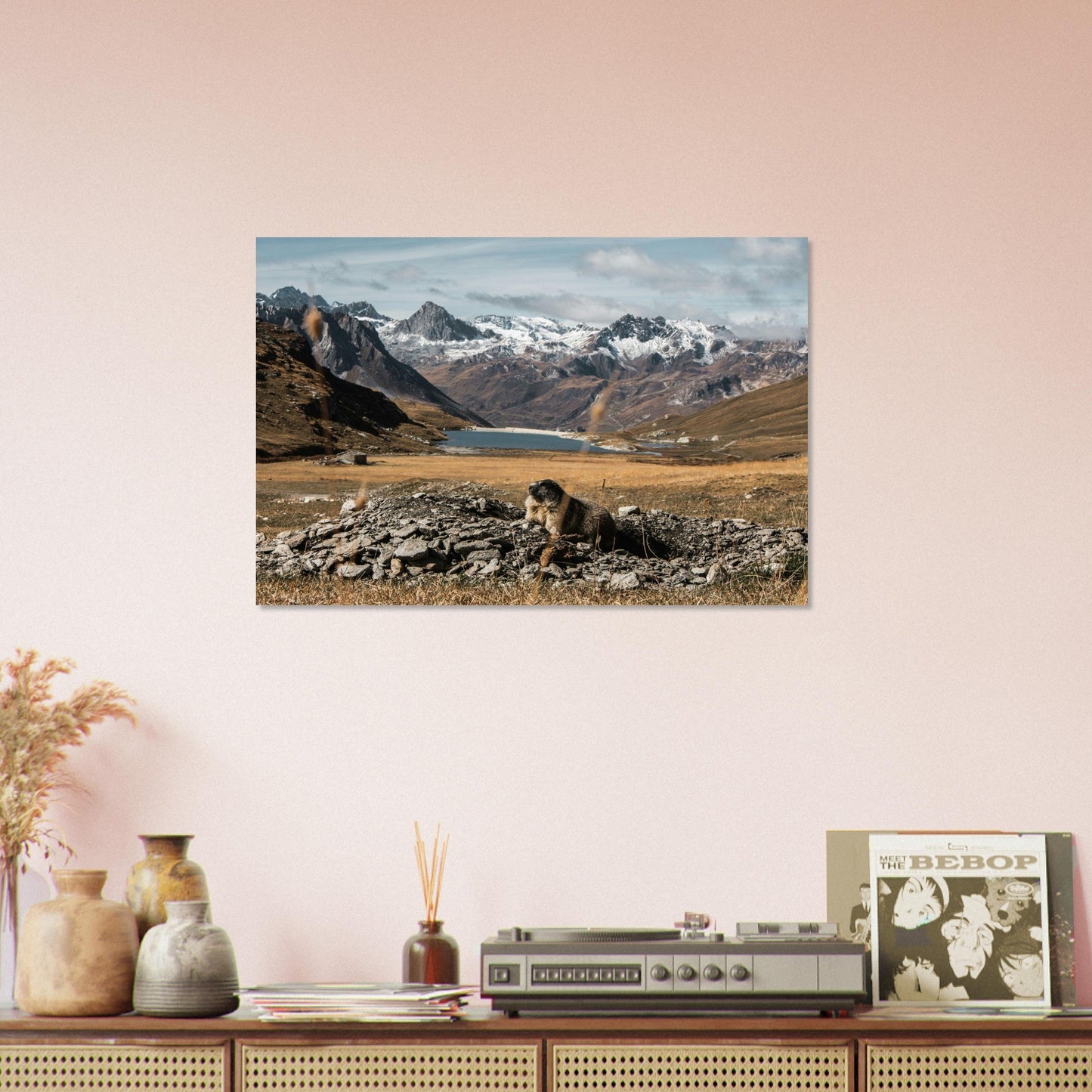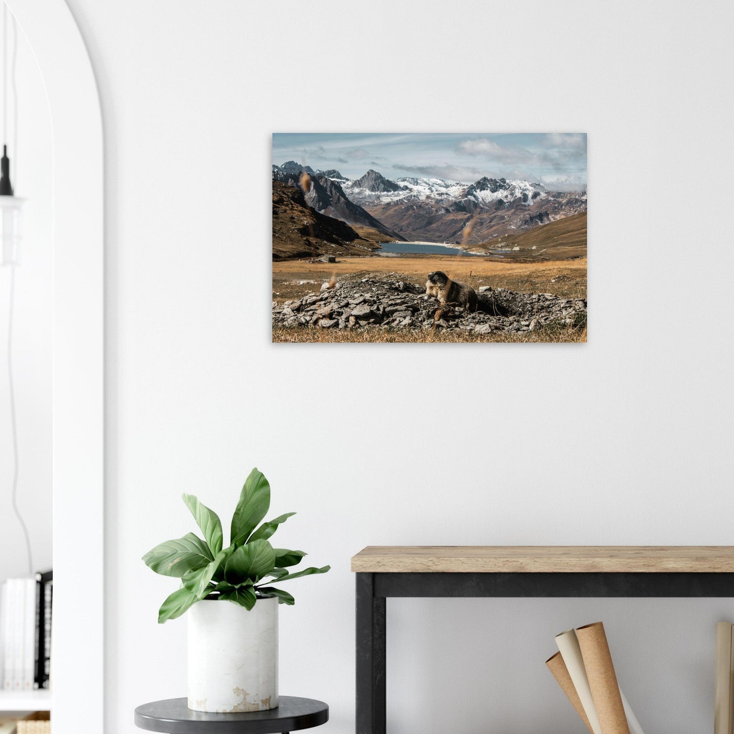 L’Alu Dibond offre une planéité parfaite, un rendu mat sans reflet et une grande longévité, sans vitrage — idéal pour sublimer les détails en montagne. Le tableau est prêt à être accroché.